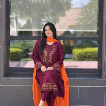 মেরুন কটন এমব্রয়ডারি কুর্তি 3Pics